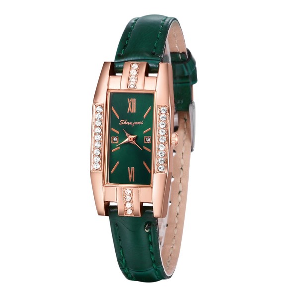 - ♥Fashionable women's watches♥ Classic stylish design with rectangular metal case and PU leather strap, the leather strap with pin buckle is adjustable, suitable for most wrists. Tempered glass protects the dial from scratches, all markings are made of high quality material. The rhinestone makes this elegant watch sparkle - the perfect balance between sporty and elegant. It is a fashionable accessory for every woman.