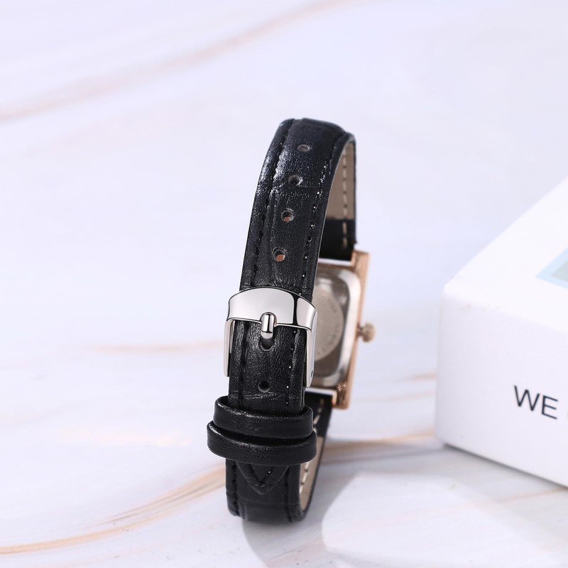 - ♥Fashionable women's watches♥ Classic stylish design with small rectangular metal case and leather strap in black, the watch strap is made with pin buckle, easy to wear. The dial is equipped with black Roman numerals, simple and clear, so that the time can be read at a glance.