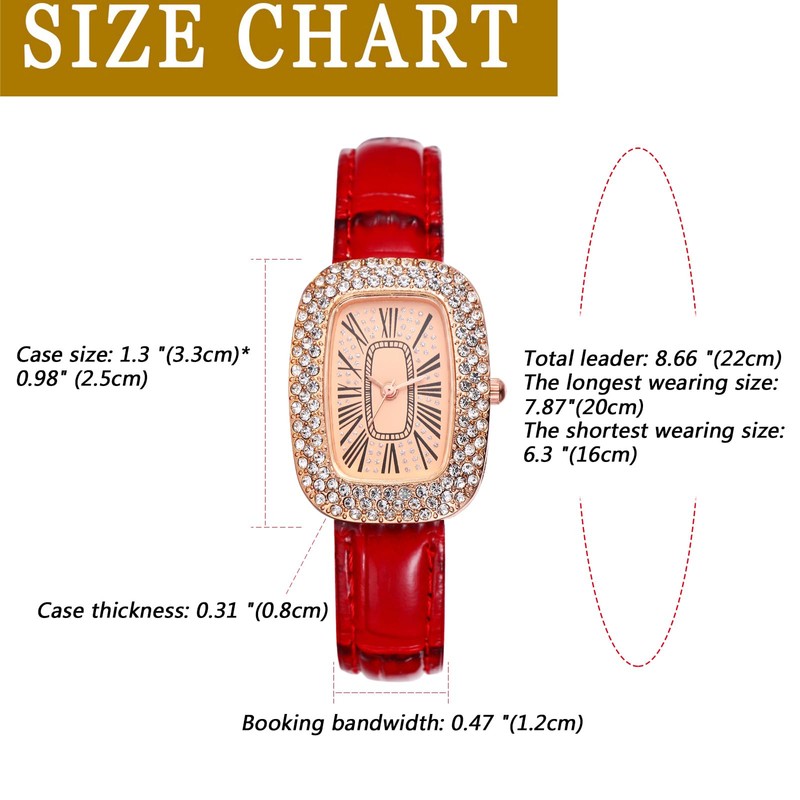 - ♥Fashionable rectangle women's watches♥ Classic stylish design with rectangular diamond-studded metal case and leather strap in different colours, the leather strap is made with a pin buckle, suitable for most wrists. The dial is equipped with Roman numerals, combined with shiny rhinestones. It is a fashionable accessory for every woman.