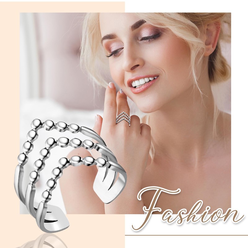 - Unique design: the design with opening in silver makes it more flexible and adjustable and is suitable for women with different finger sizes. Regardless of your finger size, this adjustable ring offers a comfortable fit and freedom. Showcase luxury and brilliance. It goes perfectly with a variety of outfits and occasions and gives your fingers a sparkling finish.