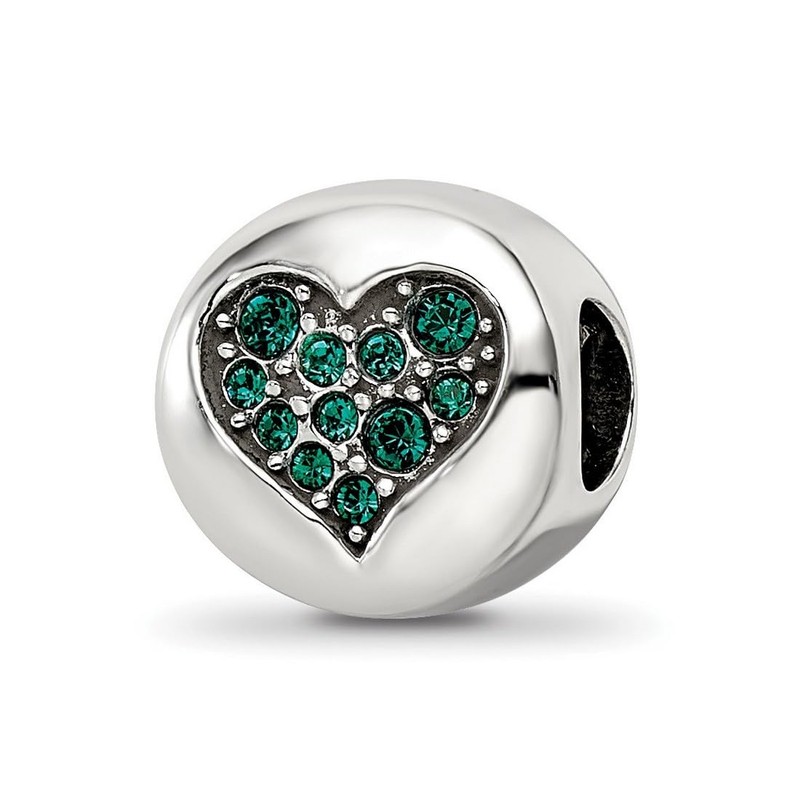 JewelryWeb 10.91mm 925 Sterling Silver Polished Reflections May Green Crystal Success Love Heart Bead-Bead Charm Pendant Necklace for Women