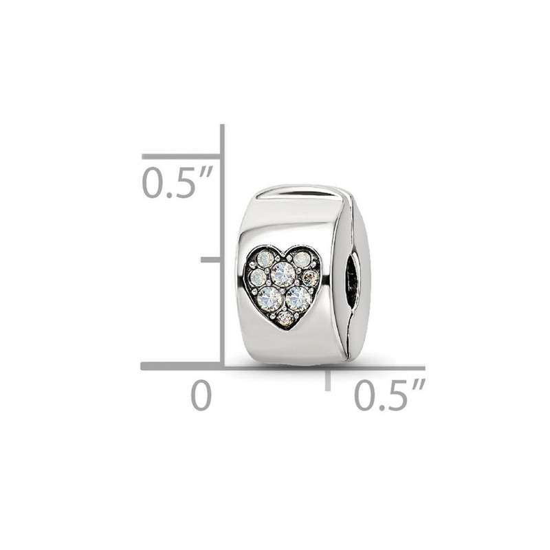 JewelryWeb 5.45mm 925 Sterling Silver Reflections Crystal Love Heart Clip Bead-Bead Charm Pendant Necklace for Women