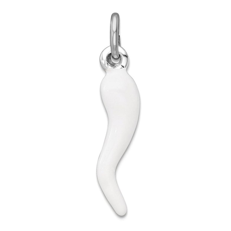 925 Sterling Silver White Enamel Italian Horn Pendant Necklace 1.5 Grams In-925-Sterling-Silver -Pendant for Women - This Item Does Not Include a Chain