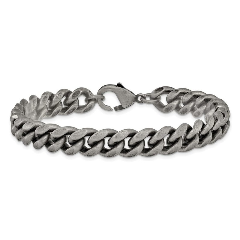 JewelryWeb Stainless Steel Artisan Oxidized and Brushed 10mm Curb Link Bracelet 8.5 Inch-Link-Bracelet for Women