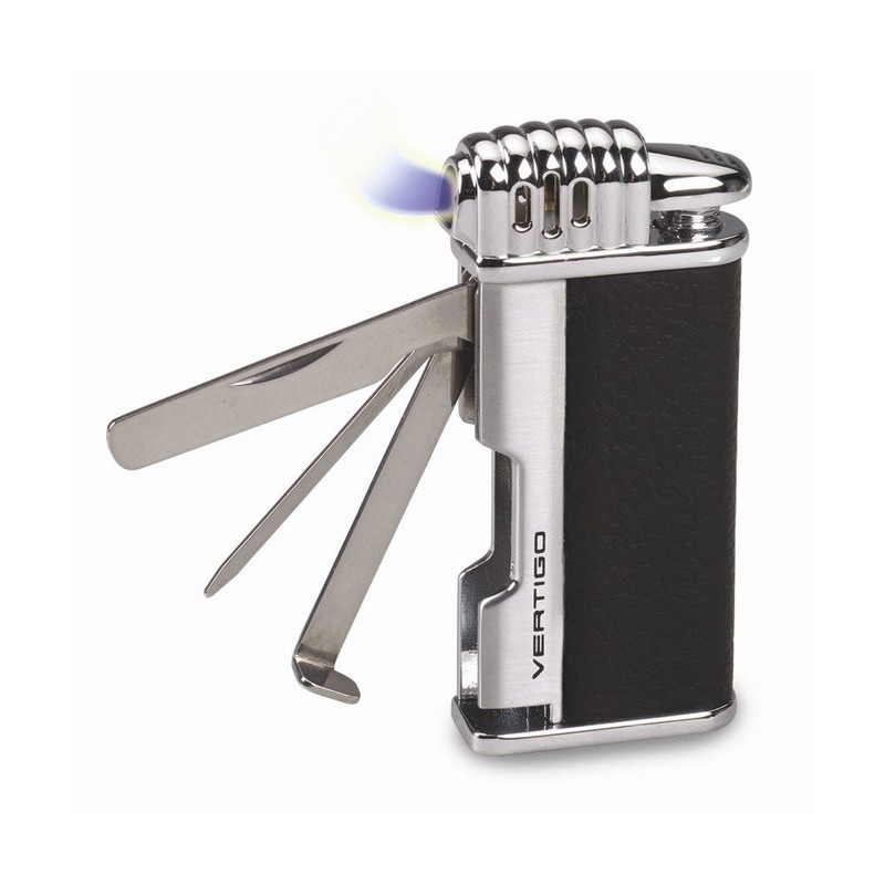 Vertigo Puffer Black & Polished Chrome Traditional Flame Pipe Lighter