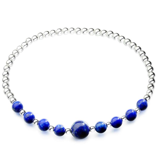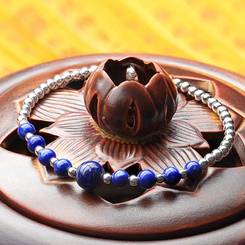 Jewever 925 Sterling Silver Beads Nature Gemstone Lapis lazuli Crystal Stretch Bracelet Fits 6-6.3" for Women Gift…