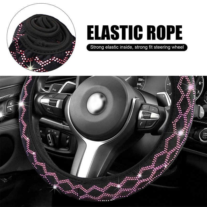 - Product Details: After purchase, you will receive 1 14.9" diamond-decorated steering wheel cover, which is suitable for most cars. When installing, put it on the steering wheel, slide it to both sides with both hands until the bottom is fixed, and finally make a slight adjustment.