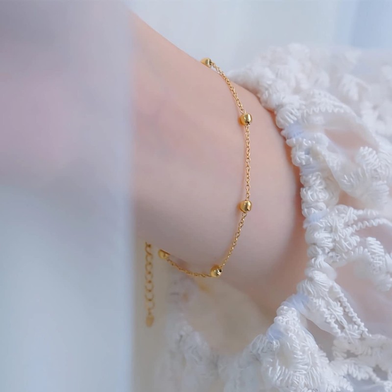 Jewlure 18 Karat Gold Plated Bracelet, Adjustable Single Layer Fine Chain Gold Round Beads Design Simple Ladies Fashion Bracelet