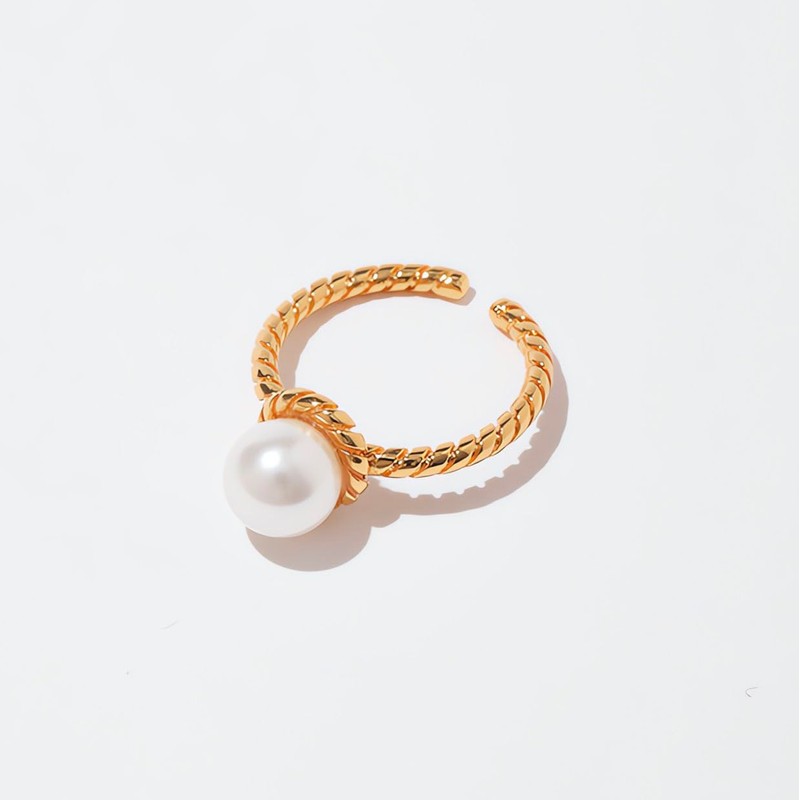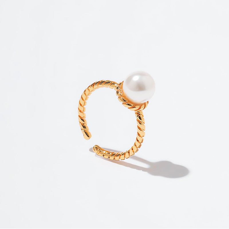 Jewlure Pearl Ring with Twisted Gold Band, 18K Gold plated Ring