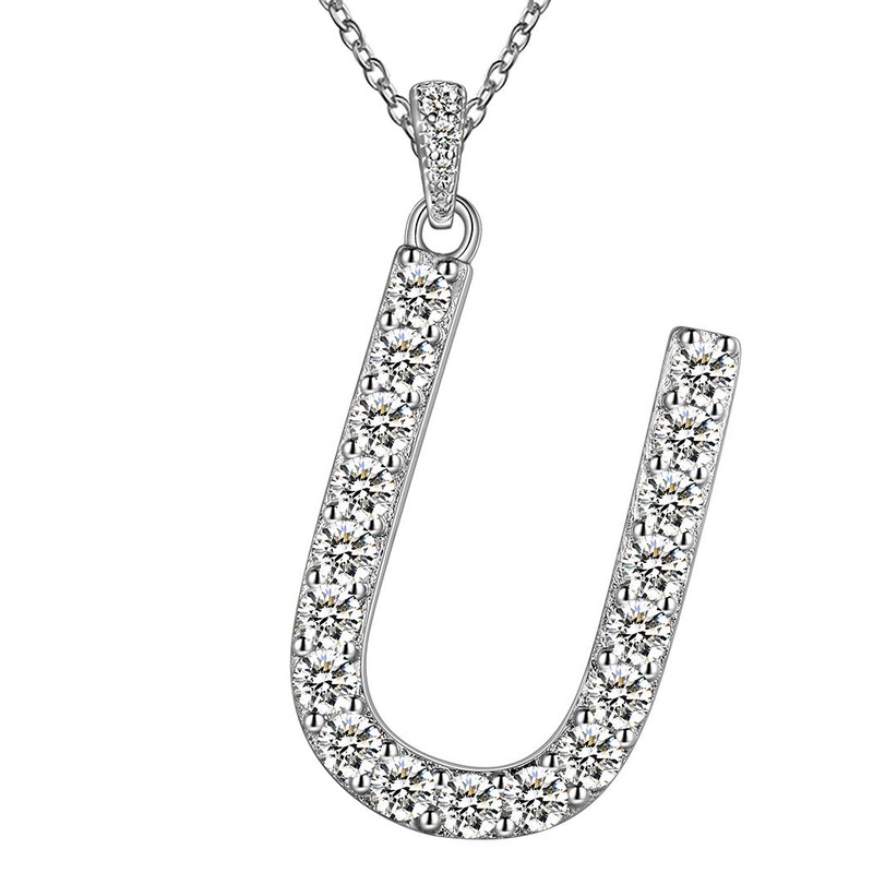 Jewmon Initial Necklace 925 Sterling Silver Cubic Zirconia Alphabet 26 A-Z Letter Necklaces for Women Girls, Sterling Silver, Diamond