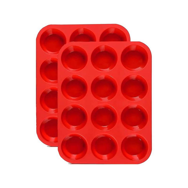 JEWOSTER 12 Cups Silicone Muffin Pan 2 Pack - Cupcake Pan Nonstick Silicone Molds Great for Making Muffin Cakes,Bread, Tart - BPA Free Baking Accessory