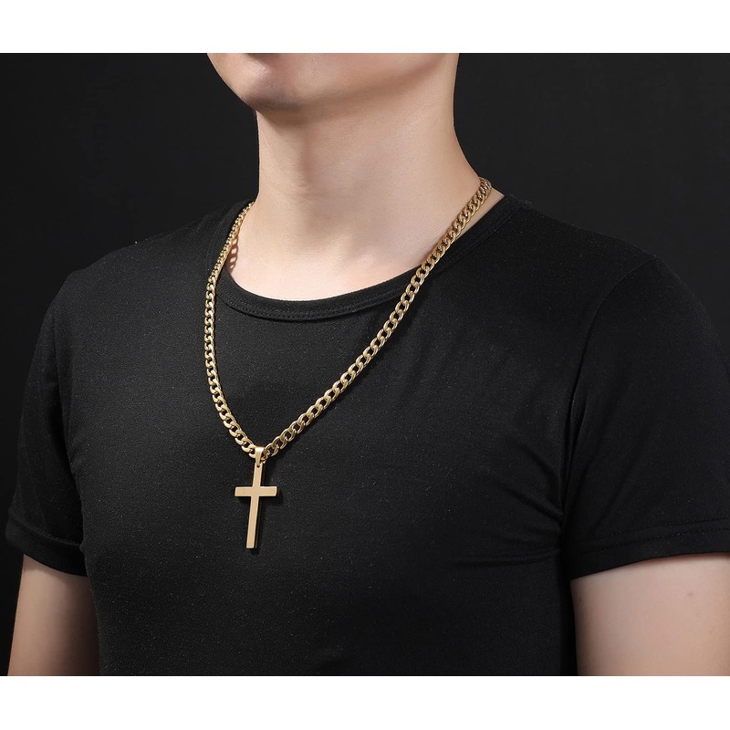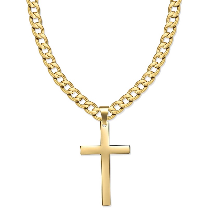 Jewow Stainless Steel Men's Cross Pendant Necklace with 7mm Wide Curb Cuban Chain