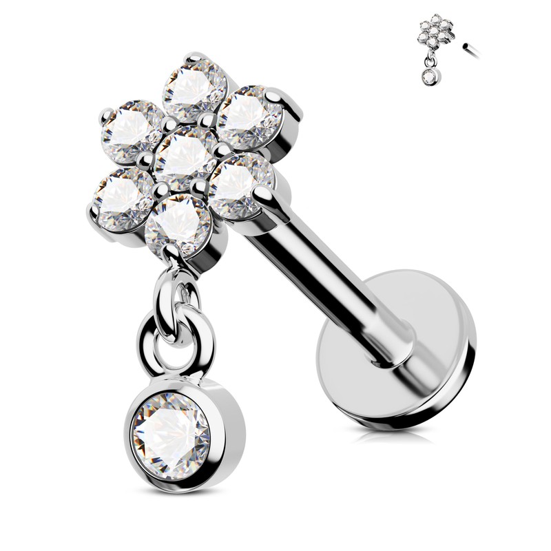 - Package: one package contains one piece of titanium flowers dangle lip piercing.