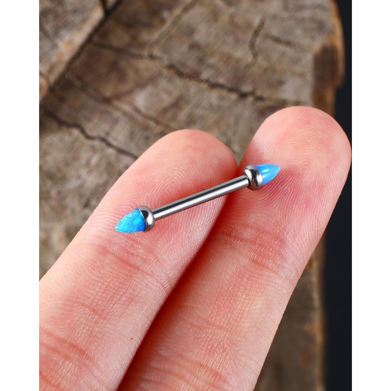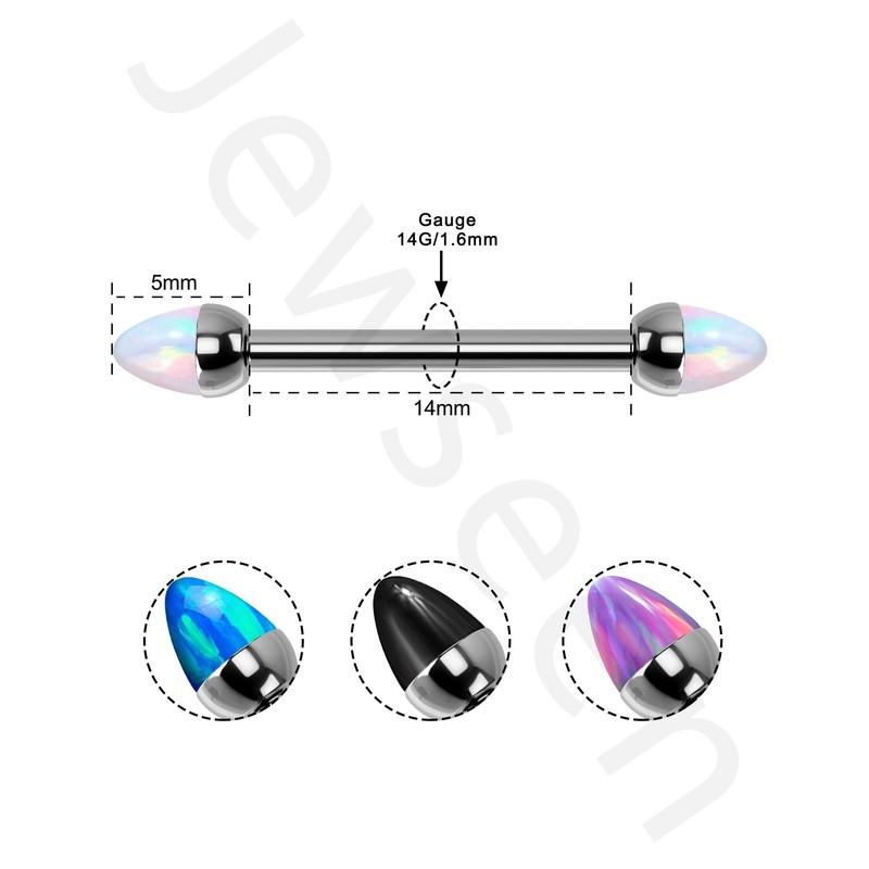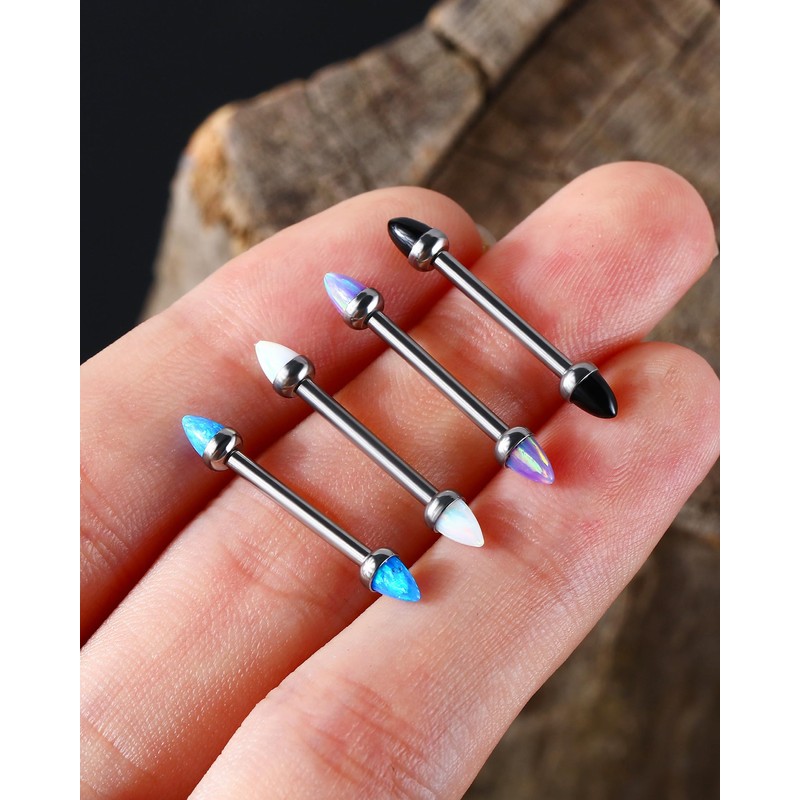 Jewseen G23 Titanium Nipple Ring Internal Thread Nipple Bars 14G Spike Nipple Piercing Jewellery Opal Bridge Barbells for Women, Titanium Opal