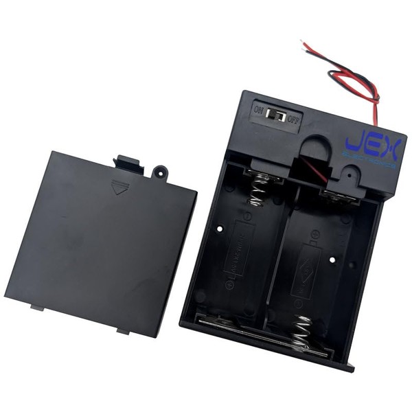 Jex Electronics Two/2X/Twin D DIY Battery Holder Case Box 3V with Power Switch & Bare Wire Ends