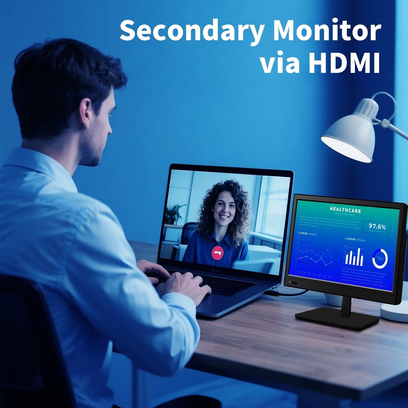 - Ultra-thin body + portable design | desktop / wall-mounted dual-use * as light as 0.8kg, the thickness of only 5Cm, with no pressure to carry; standard VESA wall-mounting holes, can be used with brackets or wall mounting, easy to create a multi-screen workstations or home audio-visual center.