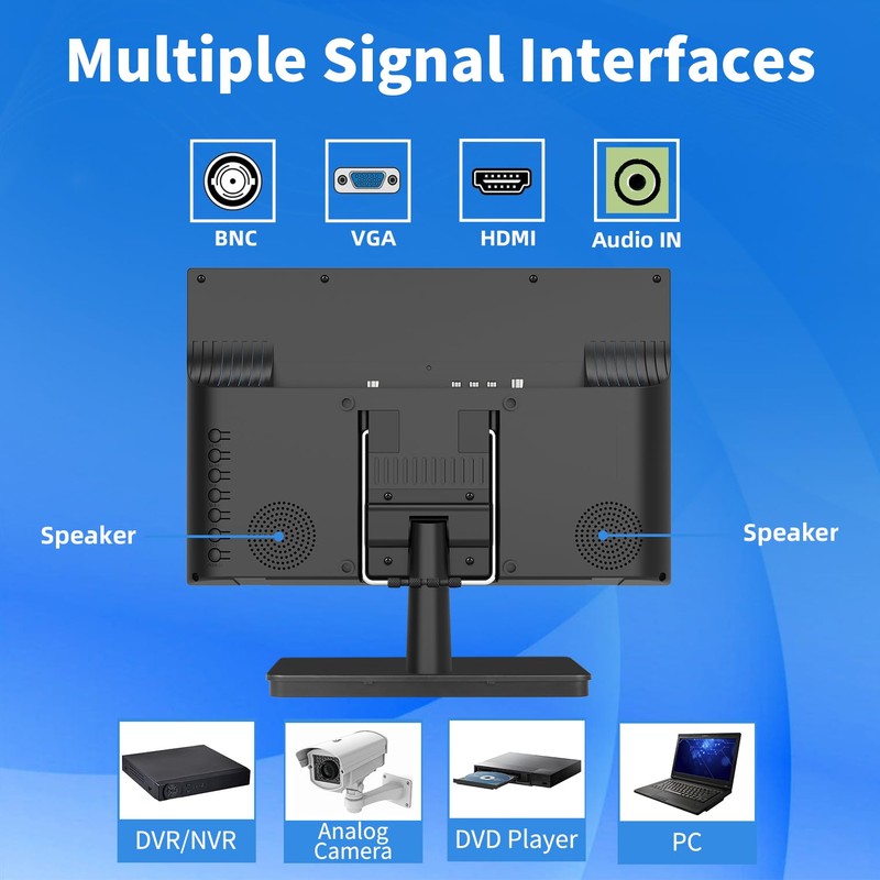 Jexiop 12.5 inch Security Monitor,Small Monitor with Speaker,Remote Control/HDMI/VGA/BNC/RCA Interfaces in for Home | Office | Warehouse Surveillance | RV