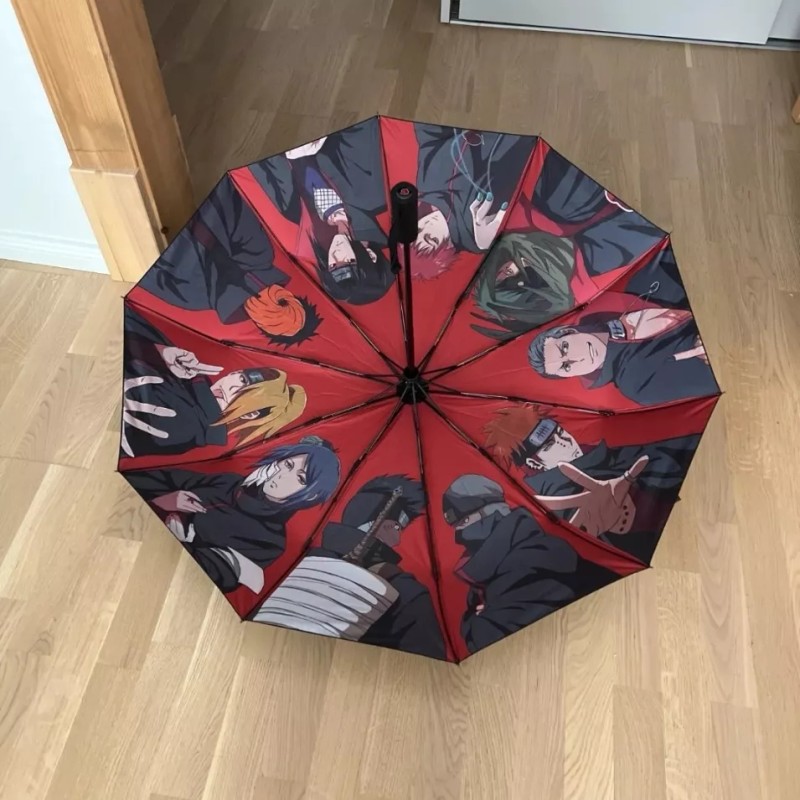 Paraguas con todos los akatsku de naruto en la parte posterior, un regalo para todo fanático y una bendición para todo otaku.