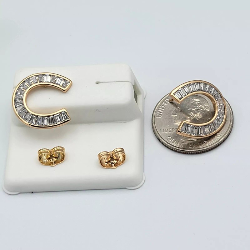 JEYFEL XOIA PREMIUM 18K Gold Plated Icy Horseshoe Earrings. Clear Crystals. Oro Laminado