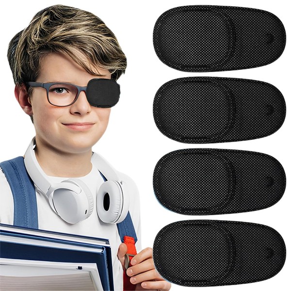 JEYORZY 4 Stück Augenklappen für Brillen, Strabismus Augenklappen, medizinische Augenklappen, zur Abdeckung des linken oder rechten Auges, stärkt die Sicht und verbessert die Amblyopie, Schwarz