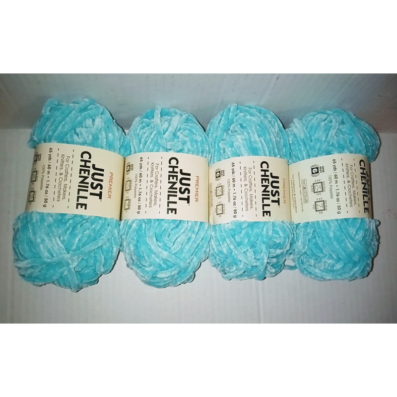JF- Premier Chenille Soft Yarn (4) Skeins Aqua for Crafts Crochet Knitting
