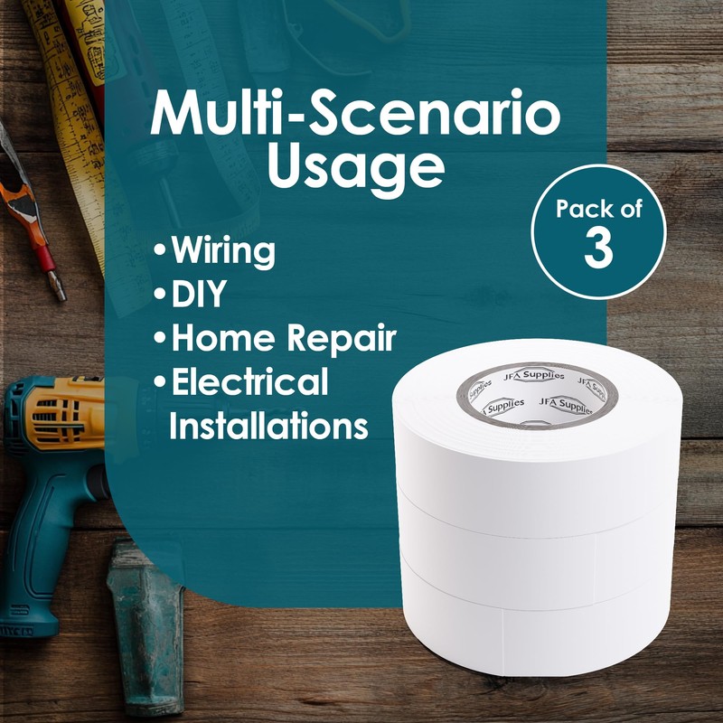 JFA Supplies Strong PVC Insulation Electrical Tape - White Colours Pack of 3-19mm x 20m