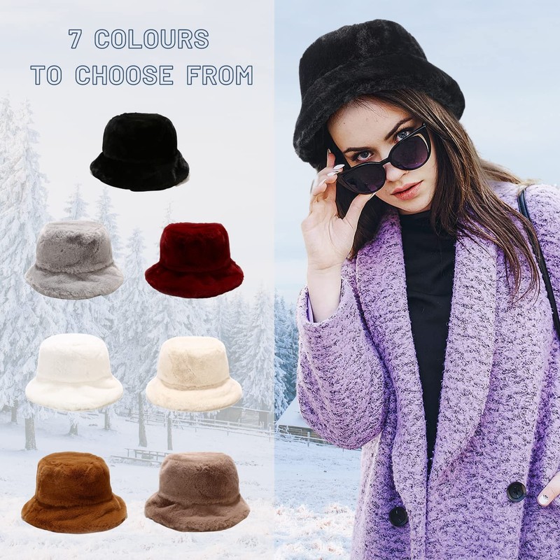 JFAN Fur Hats for Women Cute Winter Bucket Hat Large Fuzzy Caps with Lambs Wool