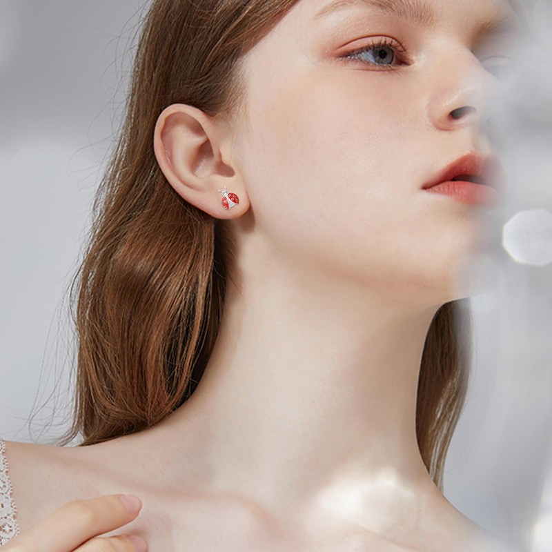 - Ladybird stud earrings: The laybird stud earrings are made of 925 sterling silver, is hypoallergenic, rust-proof, nickel-free, lead-free, cadmium-free, contains no allergenic elements. White gold plated for a long lasting finish, perfect for everyday jewellery.