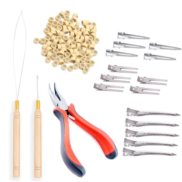 Quantity: 1 pc pliers + 1 pc pulling hook + 1 pc beads device + 15 pcs hair stying clips