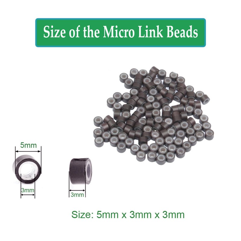 JFFX Microlinks Hair Extensions Tools Kit Plier - Pulling Hook - Bead Device with 200 Pieces 5mm Silicone Lined Micro Rings for Hair Styling Tools Accessory (Dark Brown Beads)