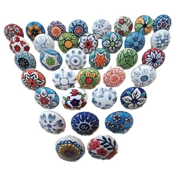 - Set of 20 Assorted Multicolor Ceramic cabinet knobs with fitting hardware.