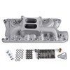 - Engine Block Deck Height:Standard deck //Carburetor Mounting:4-barrel square bore //Intake manifold Color: Natural //Intake Material: Aluminum(stain)
