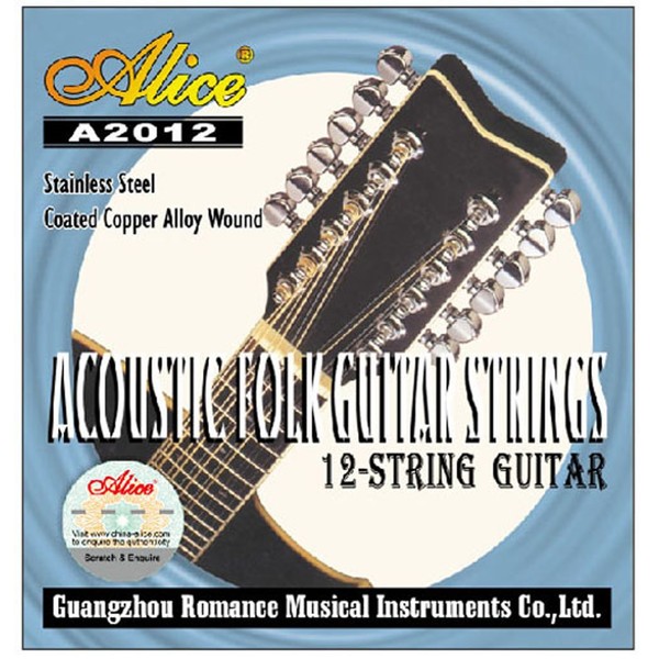 - * Alice A2012 12-strings juego de cuerdas para guitarra apta para guitarra acústica. * Tensión media (.010-.050), timbre y armónicos ricos brillantes hace las cuerdas adecuado para varios estilos de melodías y acompañamiento. * Cuerdas son de acero inoxidable, núcleo de acero, niquelado con bola. * Tamaño: por favor refiérase al tamaño del paquete para la cuerda. * Contenido del paquete: 1 juego de cuerdas para guitarra acústica de 12 cuerdas