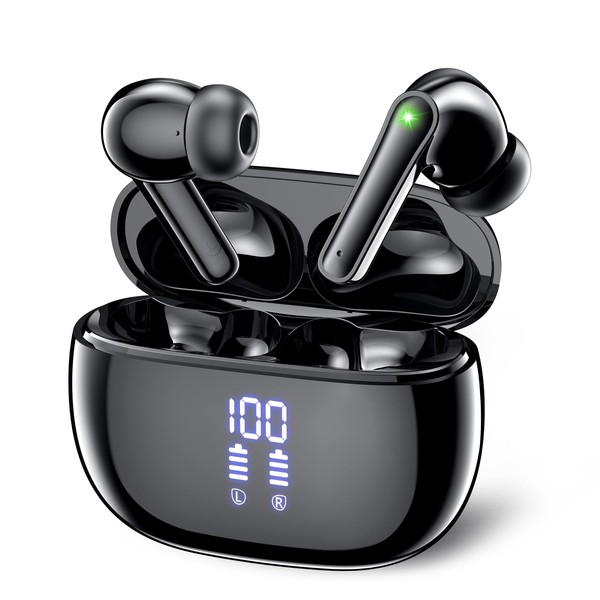 JGUG Wireless Earbuds, Bluetooth, LED Numeric Display, ENC Noise Canceling, Long Continuous Playback Time, Automatic Pairing, Hi-Fi Sound, Touch Control, Type-C Charging, Independent, Compact, Black