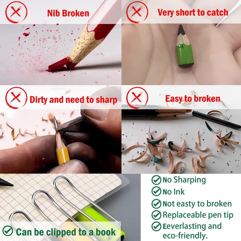 - Special Design:Infinity pencil are made of ABS material, safe and reliable,The nib adopts a screw interface design, which can be easily removed and replace, our magic pencil is equivalent to about 100 ordinary HB pencils and no need to sharpen pencil and no ink.