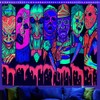 Jhdstore Blacklight Horror Face Tapestry UV Reactive Tapestries Wall Hanging Glow in The Dark Party Backdrop Tapestry for Bedroom Living Room - 29" x 37"