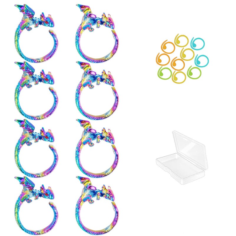 Quantity:8 Pcs dragon crochet tension rings and 10 pcs colorful metal spiral stitch markers with clear plastic box