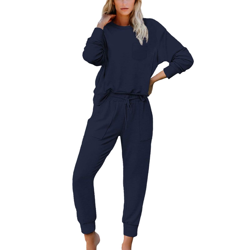 - Unique Design:The casual slim jogger pants with pockets is very fashion and comfy,elasticized waistband with adjustable drawstring,long sleeve round neck top with contrasting cuffs and pants that can at home and casual activity to wear