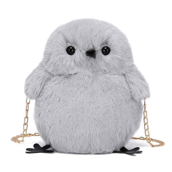 JHVYF Girls Cute Plush Crossbody Bag Hairy Chick Shoulder PursePlush Fuzzy Cell Phone Wallet Zipper Closure Bags Gray
