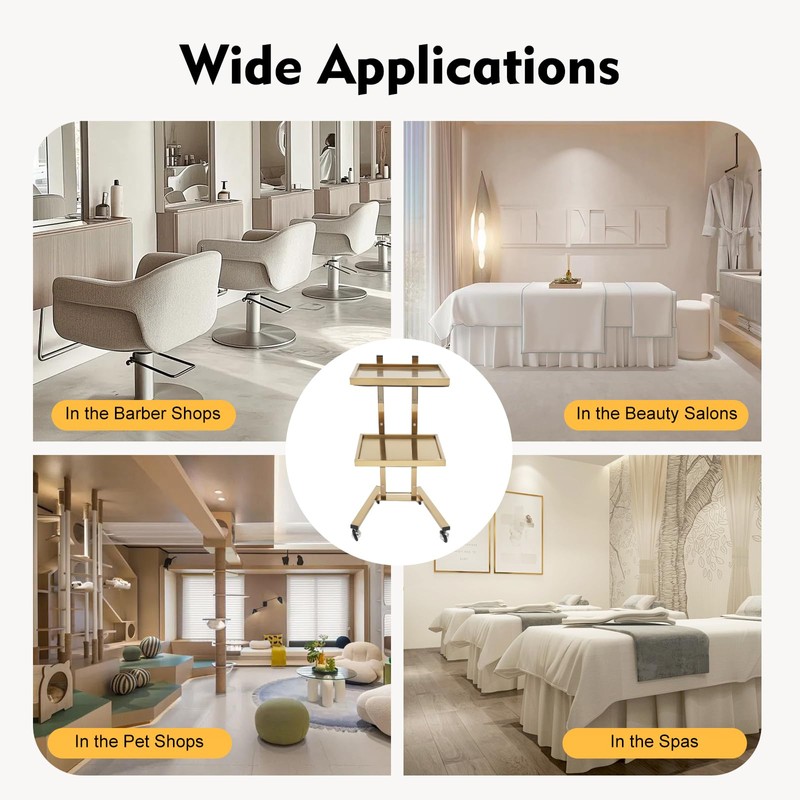 - 【2-TIER CAPACITY】This 2 tier Salon Trolley offers two spacious trays ideal for organizing hairdressing tools, esthetician supplies, and more. The open layout allows quick access to everything you need, making it a functional salon trolley cart and esthetician cart.