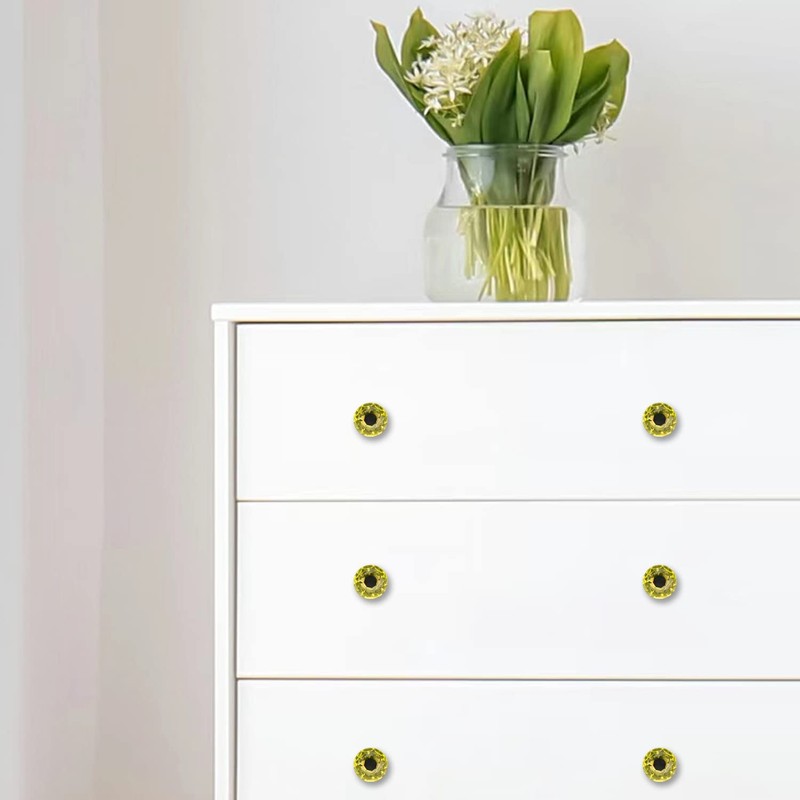 JIABOSE 10pcs 40mm Yellow Crystal Door Knobs for Cabinet Drawer Wardrobe Home Decorating with Silver Base