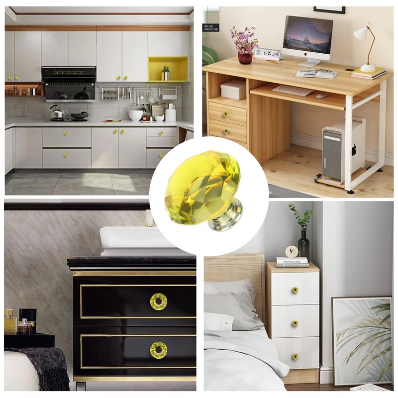 - APPLICATION: for cabinets, drawers, dressers, bookcase, wardrobe, cupboard in kitchen, bathroom, and bedroom. When the light hits the facets of the knobs, they shine and leave beautiful prisms on the furniture. Our glass knobs will add glamor to any furniture and a touch of elegance to the rooms.