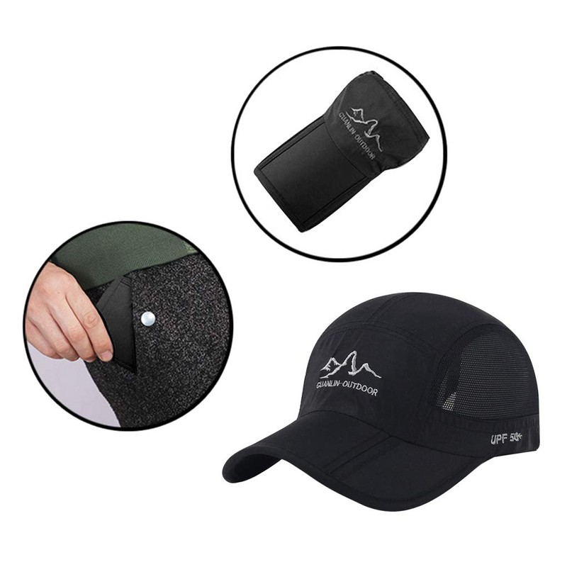 JIAHG Men's Baseball Cap Sun Hat Quick-Drying Baseball Sun Sports Cap, Foldable, Lightweight, Adjustable, for Outdoors, Sports and Travel - Mesh black