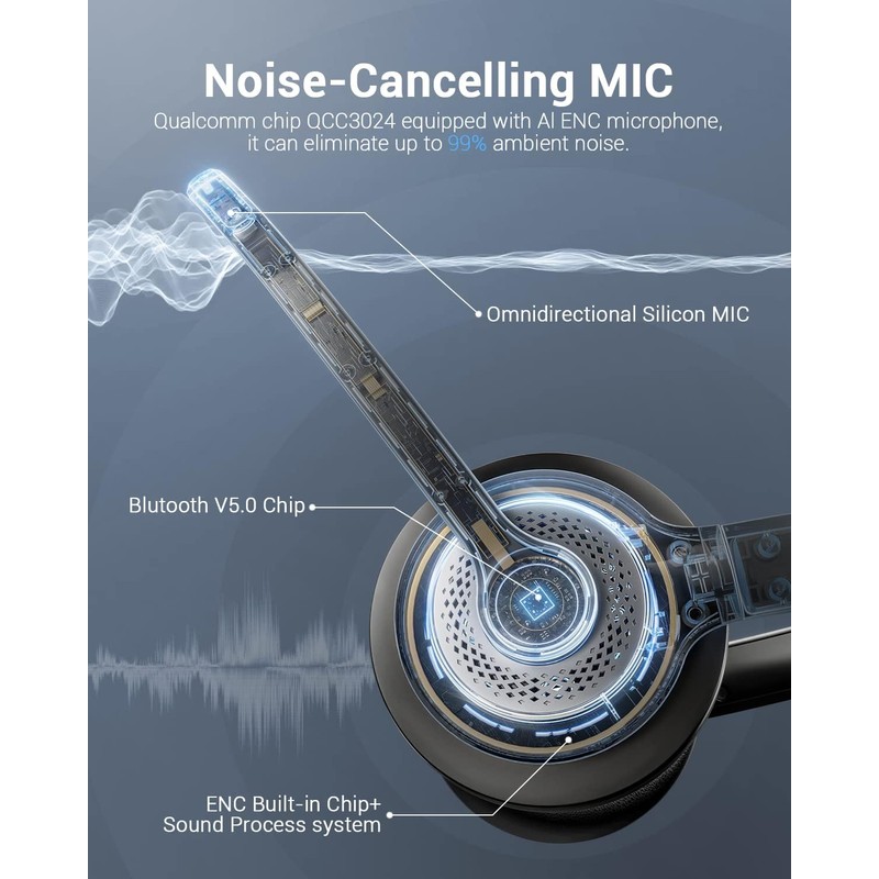 • ✅【Qualcomm cvc8.0 Noise Cancelling Microphone】JIAMQISHI EH02P wireless headset for computer Qualcomm chip QCC3024 equipped with AI environmental noise cancelation microphone, it can eliminate up to 99.99% of the ambient noise. So you can hear and be heard clearly wherever you are.