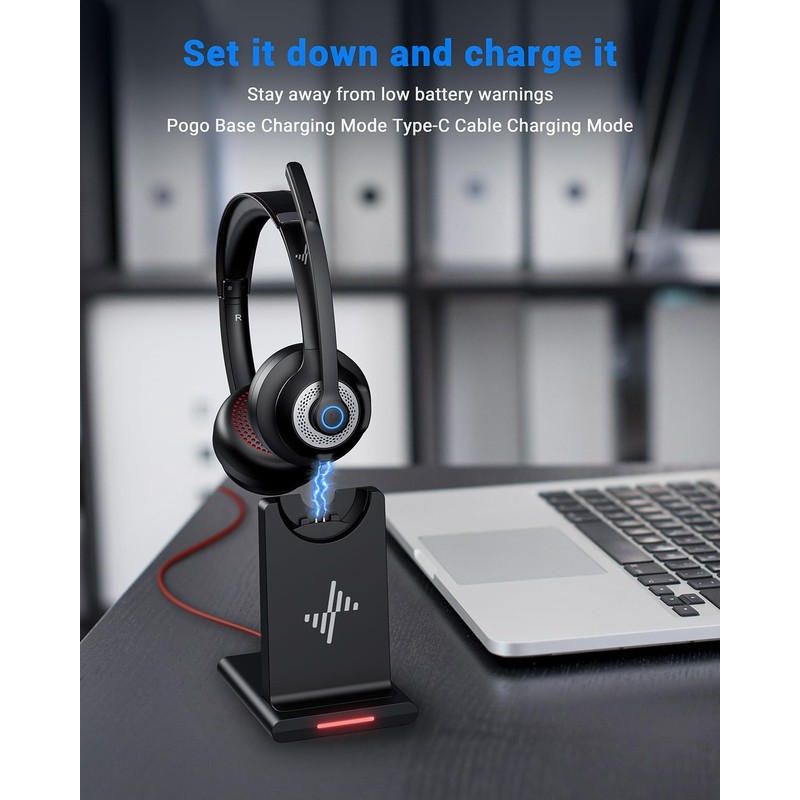 • ✅【Long Battery Life with Charging Dock】PC wireless headphones with microphones come with a 350 mah battery, and Bluetooth headphones provide up to 14 hours of continuous talk and 200 hours of standby time on a single charge. In addition, this laptop wireless headset comes with a plug-and-play charging dock, which you can use for wireless charging or a TYPE-C charging cable.