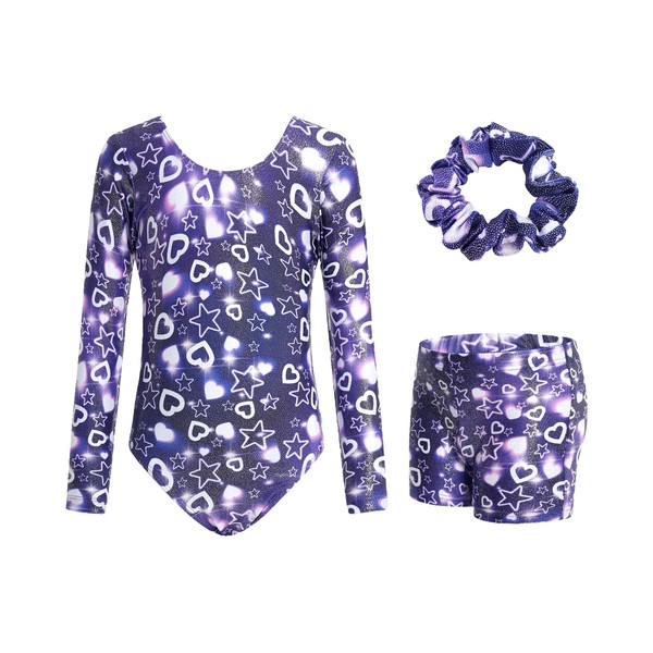 JiAmy Girls' Gymnastics Leotard Gymnastics Shorts Headband Set Leotard Set for 3-12 Years, Purple Heart
