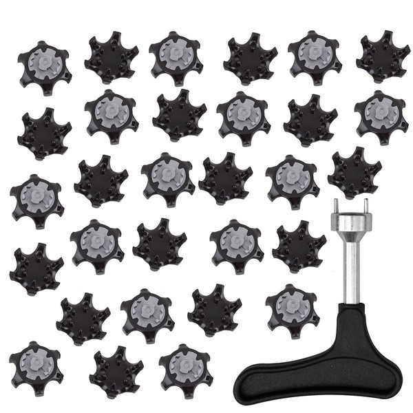 - 【Set Contents】30 black (white) gray metal spikes and 1 replacement golf shoe spike wrench is safely stored in a beautiful plastic box