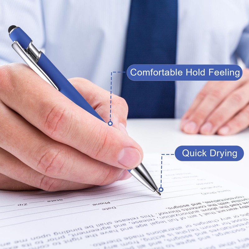 - Ballpoint Pen with Touch Pen: This click ballpoint pen has a pocket clip and stylus on one end. The rubber tip of this pen is compatible with tablets, mobile phones, computer screens or other touchscreen devices. Anti-scratch and fingerprint-free.