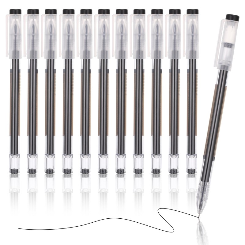 JIANTA Set of 12 Gel Pens Set, Quick Drying Gel Pen Black, 0.5 mm Fine Tip, Smooth Ballpoint Pens for Daily Writing, School, Office Supplies