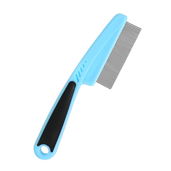 JIANYI Flea Comb with Rubber Handle, Flea and Tick Comb for Dogs & Cats, Fine Tooth Dog Comb for Grooming (Blue)